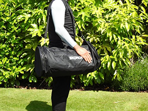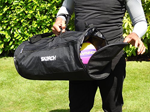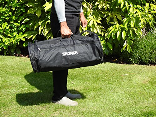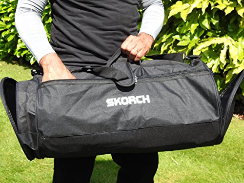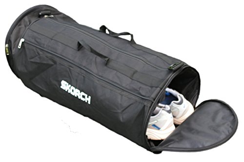-. Brand : SKORCH -. Color : Black -. Department : mens women -. EAN : 5060501800351 -. Feature : This bag has been designed for convenience. Its long barrel shape allows it to hold a surP.R.Ising amount of gear while being able to fit into surP.R.Isingly small spaces in your car. / Large main compartment and a slim slide organizer zipper pocket. / Adjustable shoulder strap can be removed for convenience or if you use the bag as checked in flight baggage. / At one end of the bag is a slim circular zipped pocket for cell phones, wallet or small items and valuables. At the other end is another zipped compartment which is large enough to carry your shoes, football or other items. / Ideal for any sports or travel requirements. -. IsMemorabilia : 0 -. ProductGroup : Apparel -. ProductTypeName : LAGE -. Size : Large -. Title : SKORCH Holdall Duffle Bag 12x25 Inches (30x64cm). Shoe pocket. Shoulder strap.