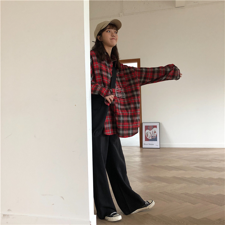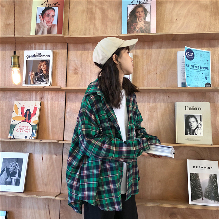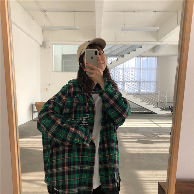 ゆったりとしたサイジングが、女性らしい華奢見せ効果をもたらすチェックシャツです★