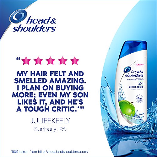 Get rid of dandruff (1) and leave your hair smelling fresh with Head Shoulders Green Apple 2-in-1 anti-dandruff shampoo conditioner. The 2-in-1 shampoo combines Head Shoulders dandruff-fighting power with the lightweight conditioning your hair needs. Head Shoulders 2-in-1s feature 3Action Formula that 1) CLEANS - to remove oil and flakes, 2) PROTECTS - scalp from dandruff (1), 3) MOISTURIZES - each hair strand from scalp to tip. Get unbelievably beautiful hair that’s up to 100% flake free (1) with Head Shoulders. Why choose Head Shoulders? A great anti-dandruff shampoo should do more than fight flakes. Head Shoulders not only removes flakes but also protects your scalp from dandruff (1) and moisturizes your hair. That's why Head Shoulders is #1 Dermatologist recommended dandruff brand and World's #1 shampoo (3). Our products are tough on dandruff but gentle on hair so you can use them every day. Try the full line of Head Shoulders products: From dry scalp to itchy scalp, dry hair to oily hair, and from a crisp green apple scent to handsome Old Spice freshness, Head Shoulders has a version that’s right for you. Explore our full line of shampoos, 2in1s, conditioners, and hair and scalp treatments. 1. visible flakes, with regular use 3. PG calculation based on Nielsen sales information July 2015-June 2016 4. satisfaction guaranteed. Mail product and receipt for a refund via prepaid card. Valid 1 year from purchase. Call 1-800-843-3543 for details. 0 |