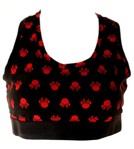 Disney Minnie Mouse Minzana Jrs Athletic Sports Bra Crop Top, Black Red, Large