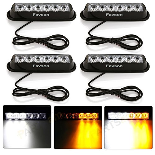 Favson 6 LED Strobe Lights for Trucks Cars Van with Super Bright White&Yellow Emergency Flasher(4 pcs)