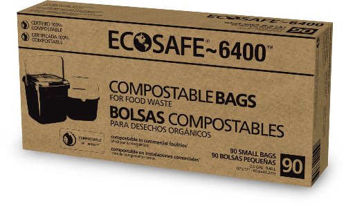 EcoSafe-6400 CP1617-6 Compostable Bag, Certified Compostable, 2.5-Gallon, Green (Pack of 90)