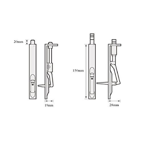 -. Feature : Lever Action Flush Door Bolt. / Pack of 1. / Dimensions: Length 150mm x Width 19mm. / Used on the top & bottom of double doors, folding doors & partitions. / Screws included.