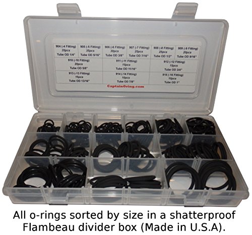 Captain O-Ring 255 Piece BOSS Hydraulic DuPont VITON 90 SAE 900 O-Ring Kit (255pc: 904, 905, 906, 907, 908, 909, 910, 911, 912, 913, 914, 916 VITON orings in plastic divider case)
