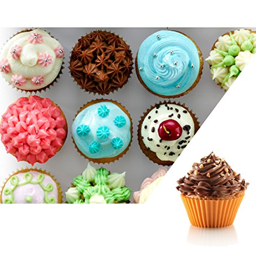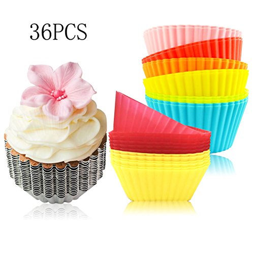 FollowFar Silicone Cake Box Bake Muffins Cup Set Bakery Cup Mold Egg Tart Cup Pudding Mold (24 Pack Silicone Cupcake Liners +12 Pack Aluminum Cupcake Liners)
