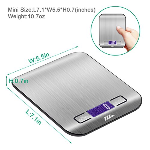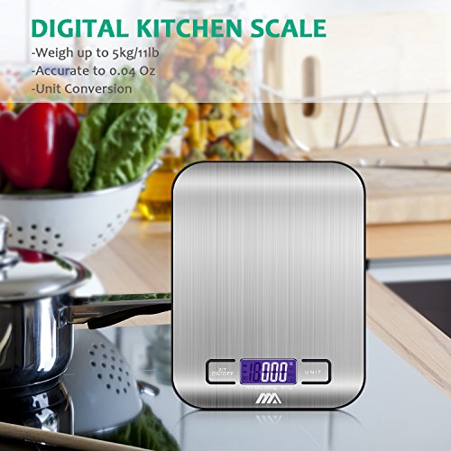 Adoric Food Scale Digital Kitchen Scale, Multifunction, 1g/0.002lbs to 11lbs capacity, Easy to Clean, Stainless Steel