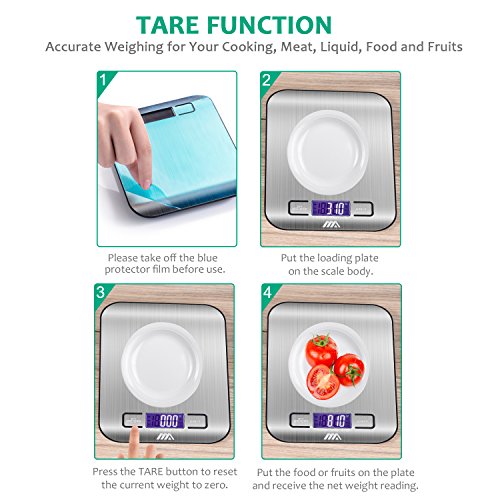 Accurate Weighing - Designed with four high-precise sensors to ensure fast and accurate weighing. Get the weight instantly and weigh accurately from 1g/0.002lb to 5000g/11lb.