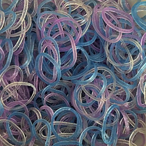Product Description Glitter Twinkle Dark bands include purple, blue and clear jelly-like bands each with sparkling silver glitter. Each bag includes 600 bands 24 c-clips. 0