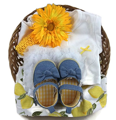 Sunshine Gift Baskets - Newborn - Summer Baby Shower Gift Set - Dress, Cardigan, Bloomers, and Shoes