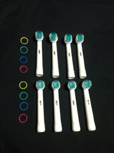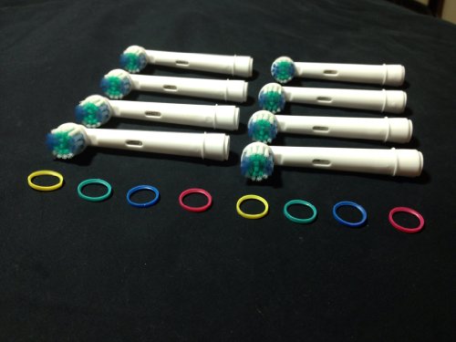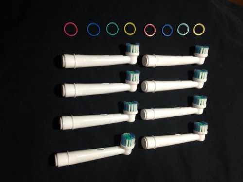 Brush heads have removable color-code rings for identification 4 replacement brush heads designed to fit Braun Oral-B electric toothbrushes and plaque remover models Soft, rounded bristles in center protect teeth from too-firm brushing Long interdental tips clean deep between teeth and below gumline Indicator bristles' color fades to signal when brush head needs replacementFeature