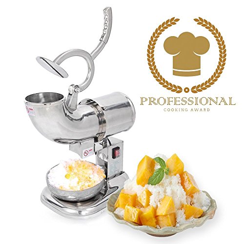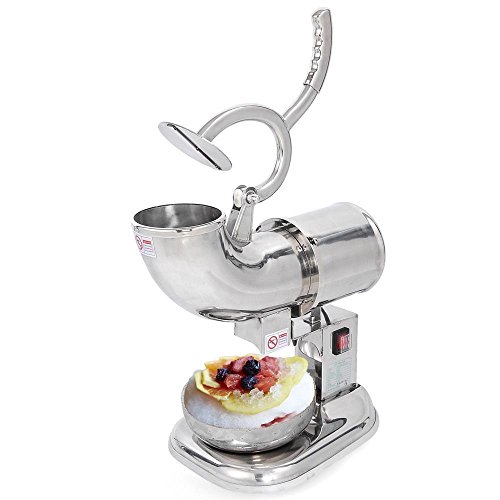 - HIGH QUALITY: The all stainless steel construction of this Ice Shaver features a stable base, hopper, shaving blade, and holding bowl. The highly efficient motor can produce 440 lbs. of shaved ice per hour; the dual stainless steel blades help shave the ice completely and easily.