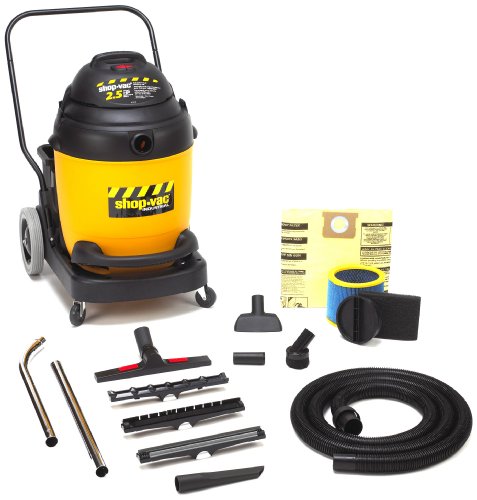 Industrial-grade wet/dry vac is designed specifically for commercial use. High-powered motor keeps you moving. Ultra-quiet operation. Includes 1-1/4quot; dia x 8 ft long Lock-On hose w/handle grip and airflow control, two interlocking metal extension wands, 10quot; wide wet/dry nozzle, crevice tool, round brush, gulper nozzle, dual-surface nozzle, cartridge filter and filter-collection bag. Current: 9.5 A; Voltage: 120 V; Power: 2.5 hp. ~ Includes wet/dry vac, dolly, 12-ft hose, wand, 14quot; master nozzle, 6quot; utility nozzle, crevice tool, round brush, tool basket, adapter and documentation.Feature