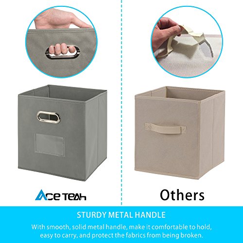 Ace Teah Storage Bins Cubes, Foldable Storage, Collapsible Fabric Cloth Storage Bins Baskets, Storage Cube Bins with Metal Handles for Home Closet Bedroom Drawers Organizers, Light Gray, Set of 6