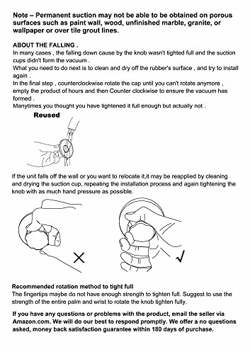 - ATTENTION:Only Fit for any NON-POROUS & SMOOTH surface . CANNOT maintain on porous or rough surfaces: Marble, Fiberglass, Paint wall, Porcelain , Nano Tiles , Plaster and wood , or across grout lines.