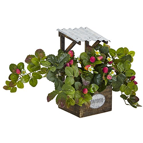 Nearly Natural 13.75" H Strawberry Artificial Flowering Bush, Green/Red