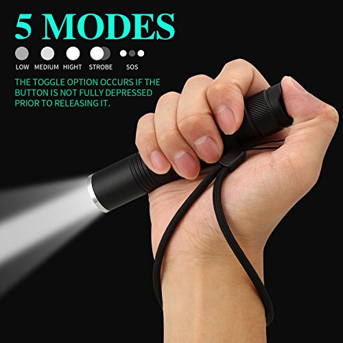 - 5 LIGHTING MODES: low, medium, high, strobe, SOS. Easy to use for any outdoor activies(Riding, Camping, Hiking, Hunting , etc).