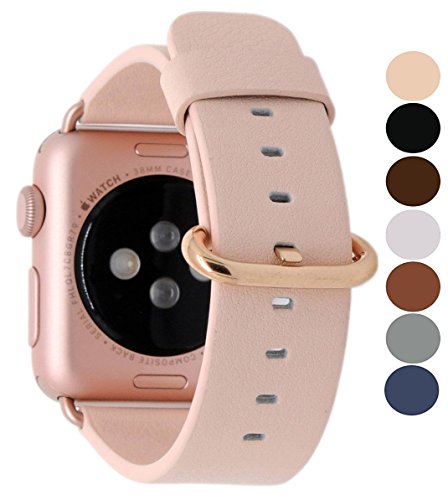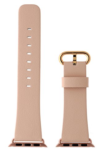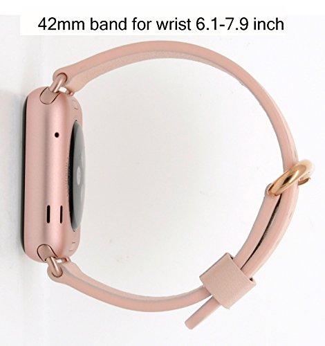 JSGJMY Apple Watch Band 42mm Genuine Leather Loop with Rose Gold Metal Clasp for iWatch Series 2/Series 1/Edition/Sport(Soft Pink+Rose Gold Buckle)