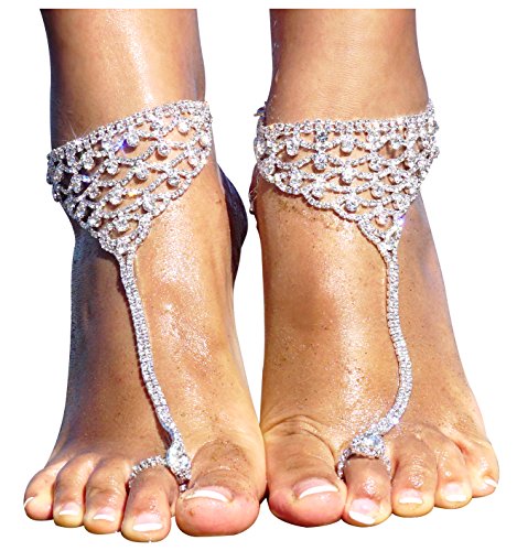 -. Feature : Material: Alloy, Rhinestone / Size: from toe to ankle: 5.9"; ankle circumference: 8.6"-13.4" / Package includes: 2 piece / Occasions: On the beach, at home, weddings party / A good Festival gifts for friends and lovers