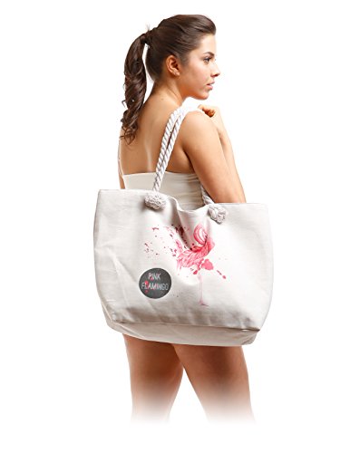 Me Plus Flamingo Print Tote Beach Shoulder Bag Braided Rope Handles