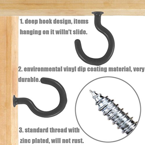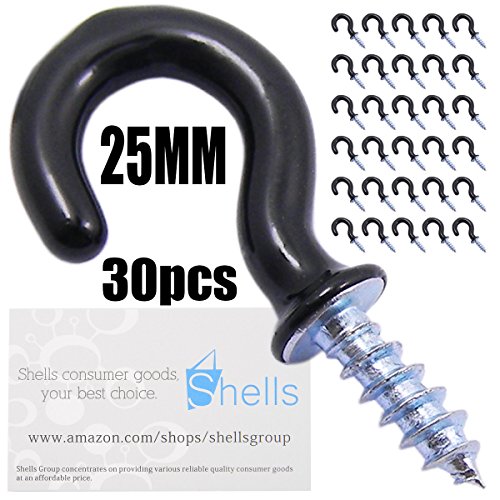 Shells 30PCS Black Color 25MM Vinyl Coated Hooks Cup Hooks Round End Screw Hooks Self-tapping Screws Hooks Question Mark Shape Hooks