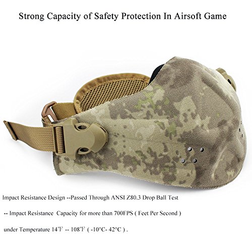 -. Binding : Misc. -. Brand : WoSporT -. Feature : Breathable Design - Comfortable for Wearing ! / Anti-Impack Design -- Great Protection for your Airsoft Game ! / Super Light Weight - The Net Weight of the Mask is only about 0.29 Lbs / Waterproof Material for Inner Surface and Outter Surface ! / 12 Tactical Colors In Option -- Perfect Match for Your Other Tactical Gear and Uniform ! -. IsAutographed : 0 -. IsMemorabilia : 0 -. Label : WoSport -. Manufacturer : WoSport -. PackageQuantity : 1 -. ProductGroup : Sports -. ProductTypeName : SPORTING_GOODS -. Publisher : WoSport -. Size : One Size -. Studio : WoSport -. Title : WoSport Half Face Airsoft Tactical Mask - Anti-Impack Waterproof Nylon CS Paintball Mask Military Face Masks