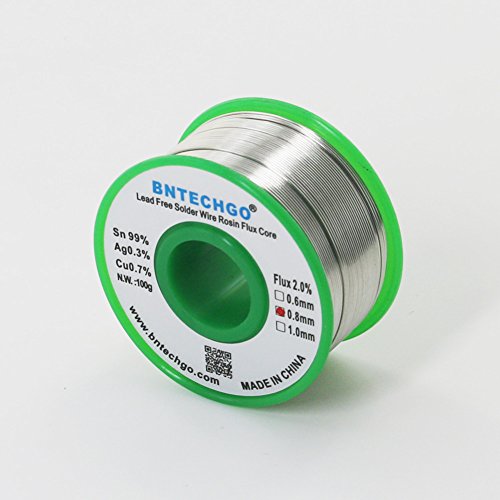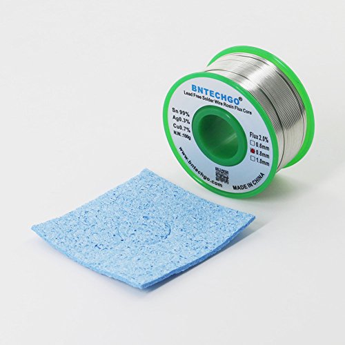 - BNTECHGO® Lead Free Solder Wire Dia.0.8mm/0.031Inch Sn99 Ag0.3 Cu0.7 Flux 2.0% Rosin Core Net Weight 3.53 Oz/100g + Free 1 Pcs Soldering Iron Cleaning Sponge 60mm x 60mm