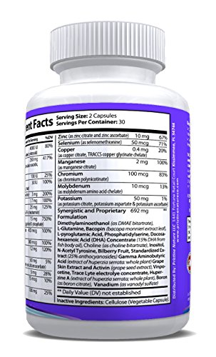 -. Feature : ALL Natural formula supports memory, concentration and overall cognitive function. / Natural ingredients like DHA and DMAE work together to promote focus and mental clarity. / Customers have reported experiencing better concentration and focus, more mental clarity, better mood and memory recall. Results may vary. / Satisfaction Guaranteed. If you are not satisfied with Untapped Mind in 60 days...Pristine Nature will refund 100% of the purchase price. / Pristine Nature only uses FDA registered, GMP compliant manufacturers.