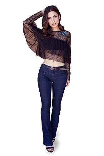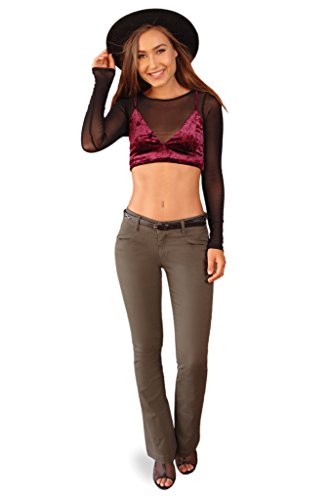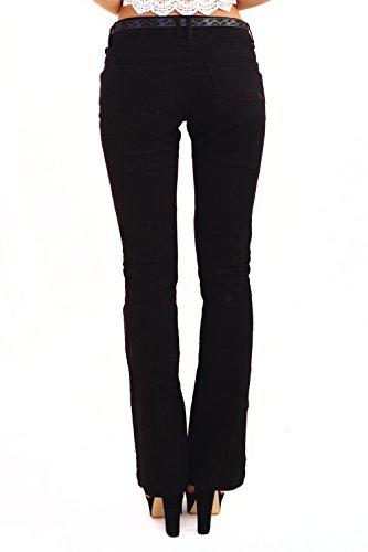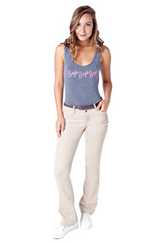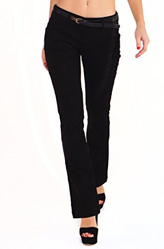 Bootcut leg opening creates a flattering fit that can be dressed up or down. Soft cotton twill with a hint of stretch for maximum comfort. Removable pleather belt. 98% cotton/2% spandex, inseam 33", leg opening 18". Fits true to size. Ideal for work, play, school, or a night on the town.Feature