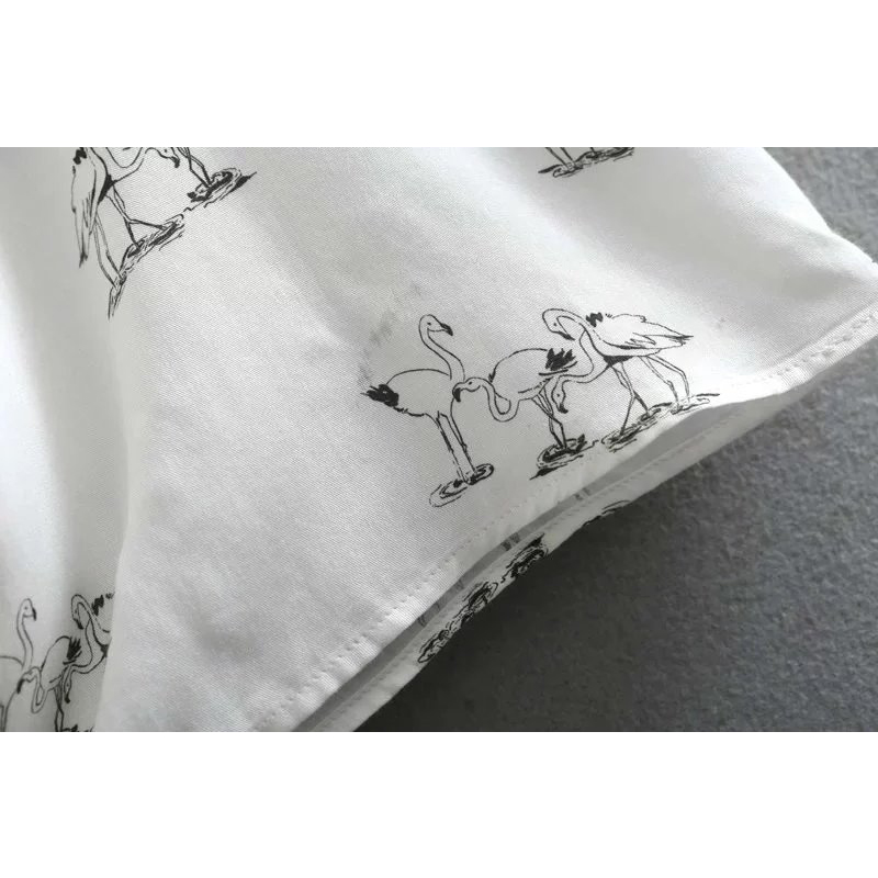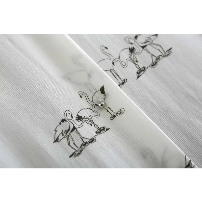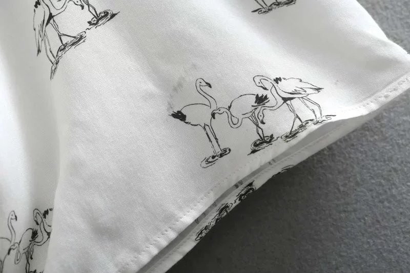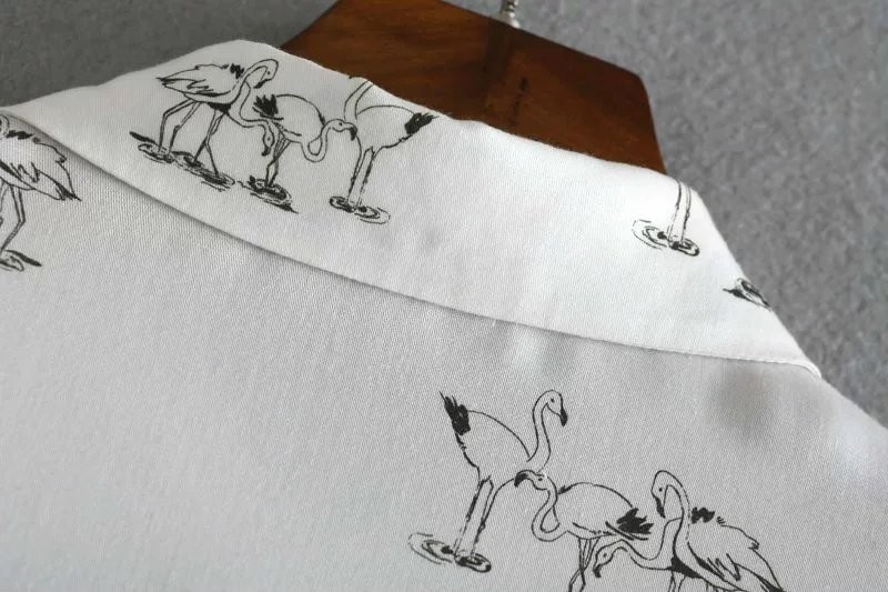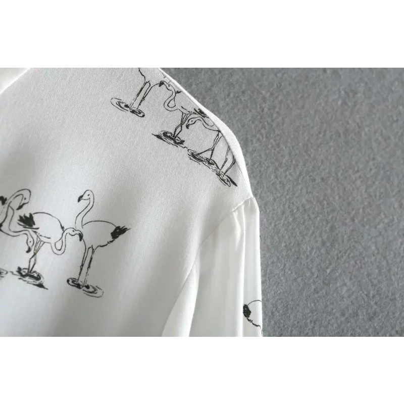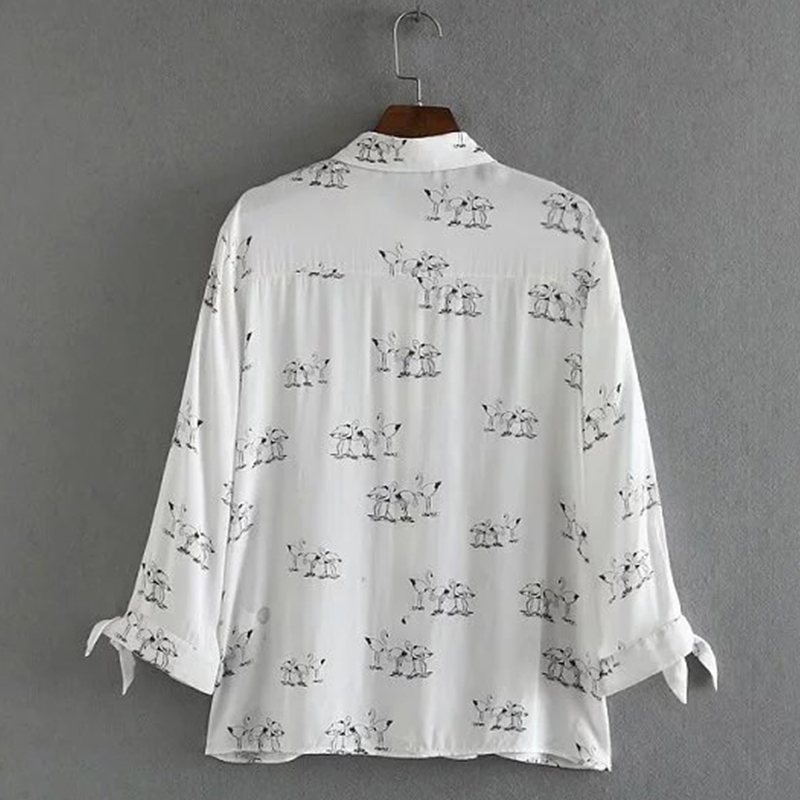 Autumn Women Blouse Fashion Swan Printed Bow Tie Cuff Work Wear Ladies Office Shirts White Long Sleeve Casual Tops