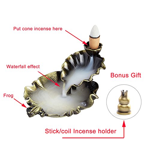 UOON Backflow Incense Cones Burner + Brass Stick Incense Holder (Bronze)