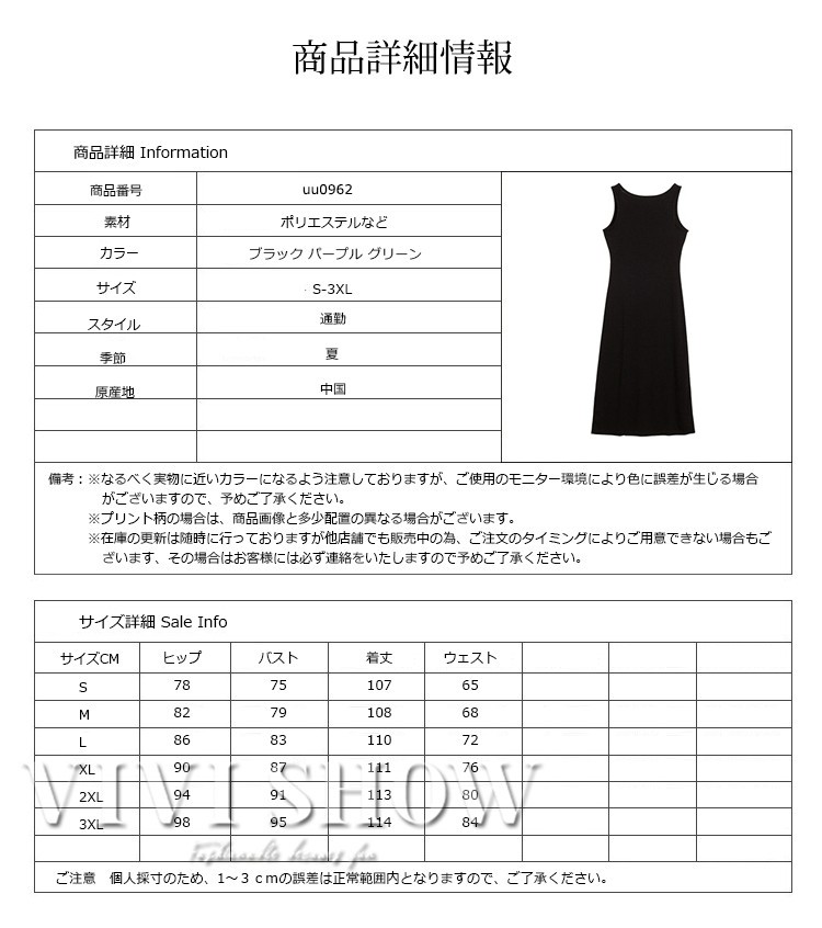 ■素材:ポリエステルなど■カラー:ブラック パープル グリーン■サイズ:S着丈107バスト75ウェスト65ヒップ78M着丈108バスト79ウェスト68ヒップ82L着丈110バスト83ウェスト72ヒップ86XL着丈111バスト87ウェスト76ヒップ902XL着丈113バスト91ウェスト80ヒップ943XL着丈114バスト95ウェスト84ヒップ98■原産地:中国