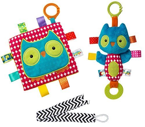 • Mary Meyer Taggies Crinkle Me Owl Square and Squeaker Set with Pacifier Clip