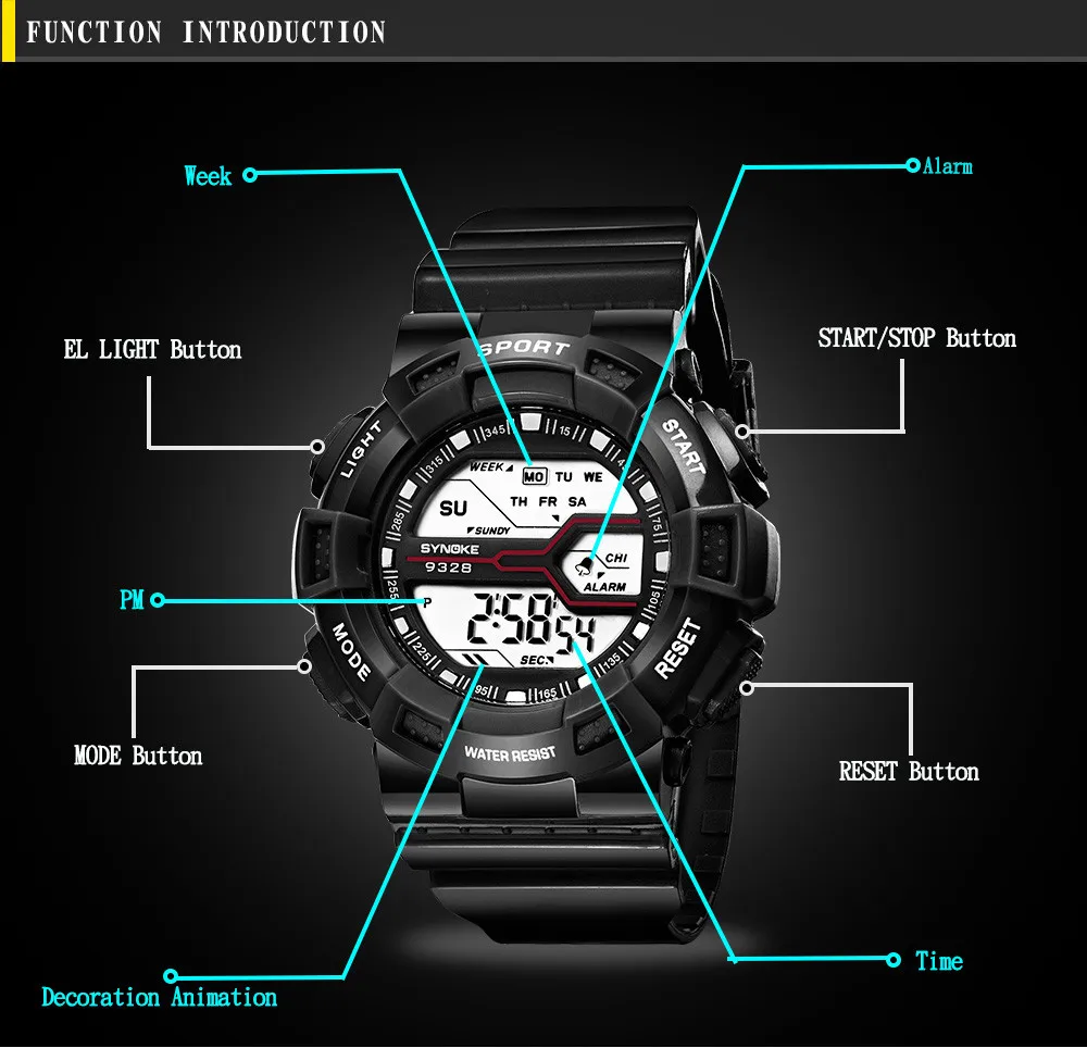 Model Number:Waterproof Children Boy Digital LED Quartz