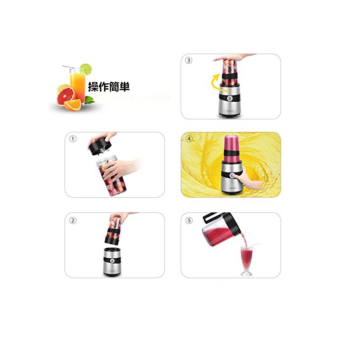 【섬세한 디자인】1.안전 록이 내장하고 있고, 조립할 때의 안전성이 보증에 옵니다 2.본체 저면에는,미끄럼방지의 설계에 확실히 고정 3.드링크용 어태치먼트 부착에 보존 휴대도 OK 4.용기와 블레이드가 분리하고 있고, 씻기 쉽다