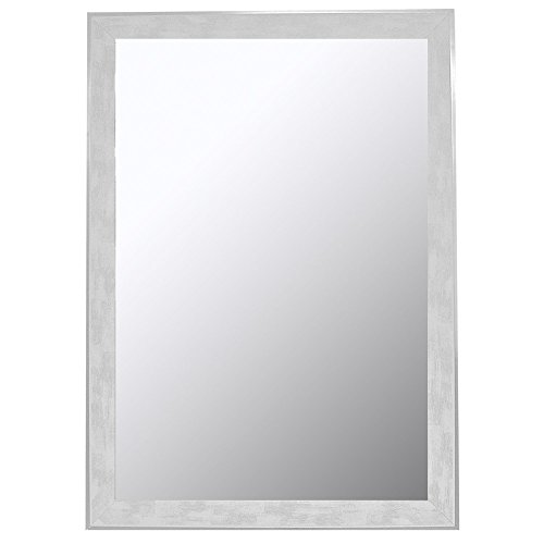 Second Look Mirrors Scratched Wash White & Silver Trim Framed Wall Mirror, 16" x 34"