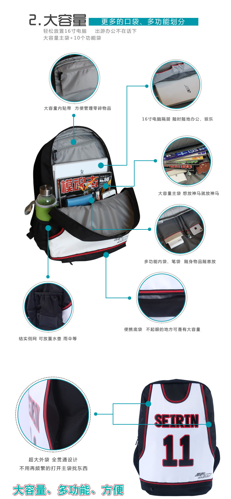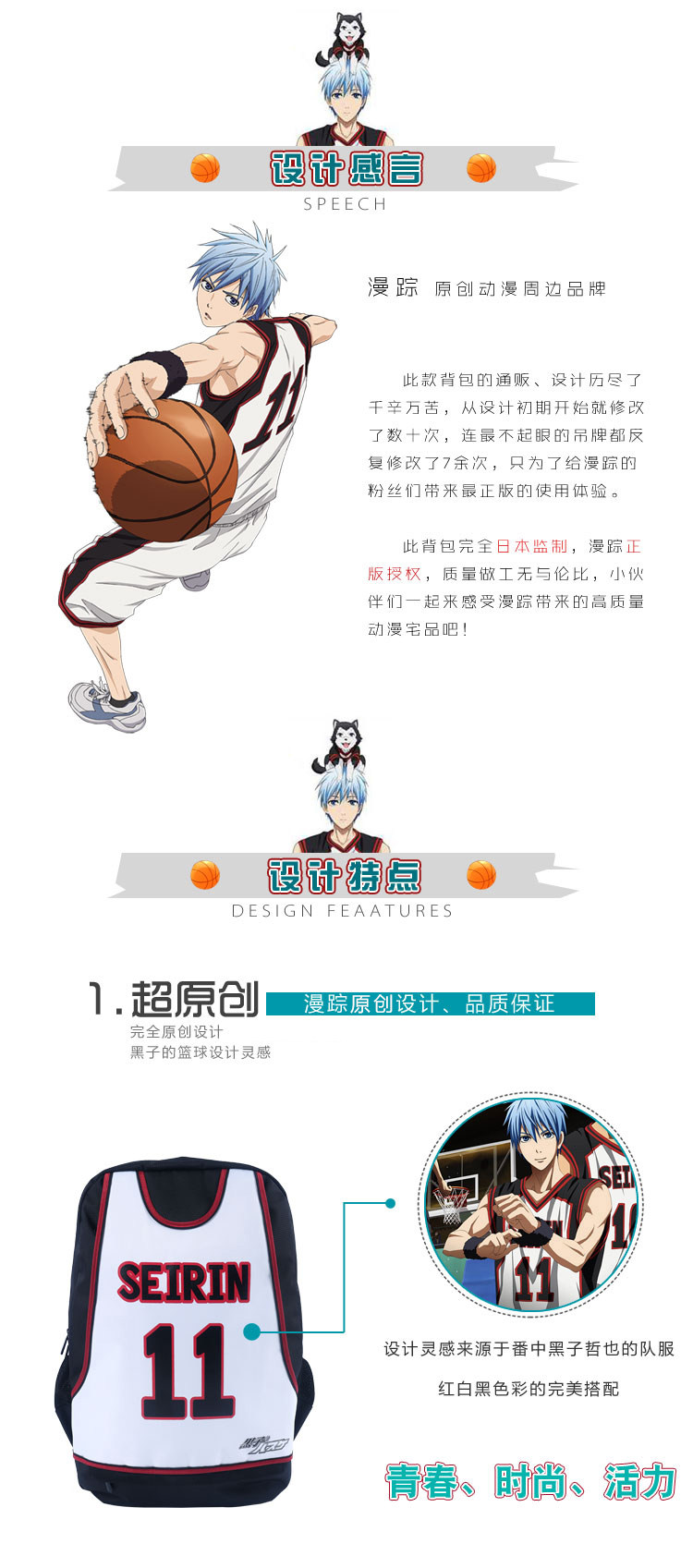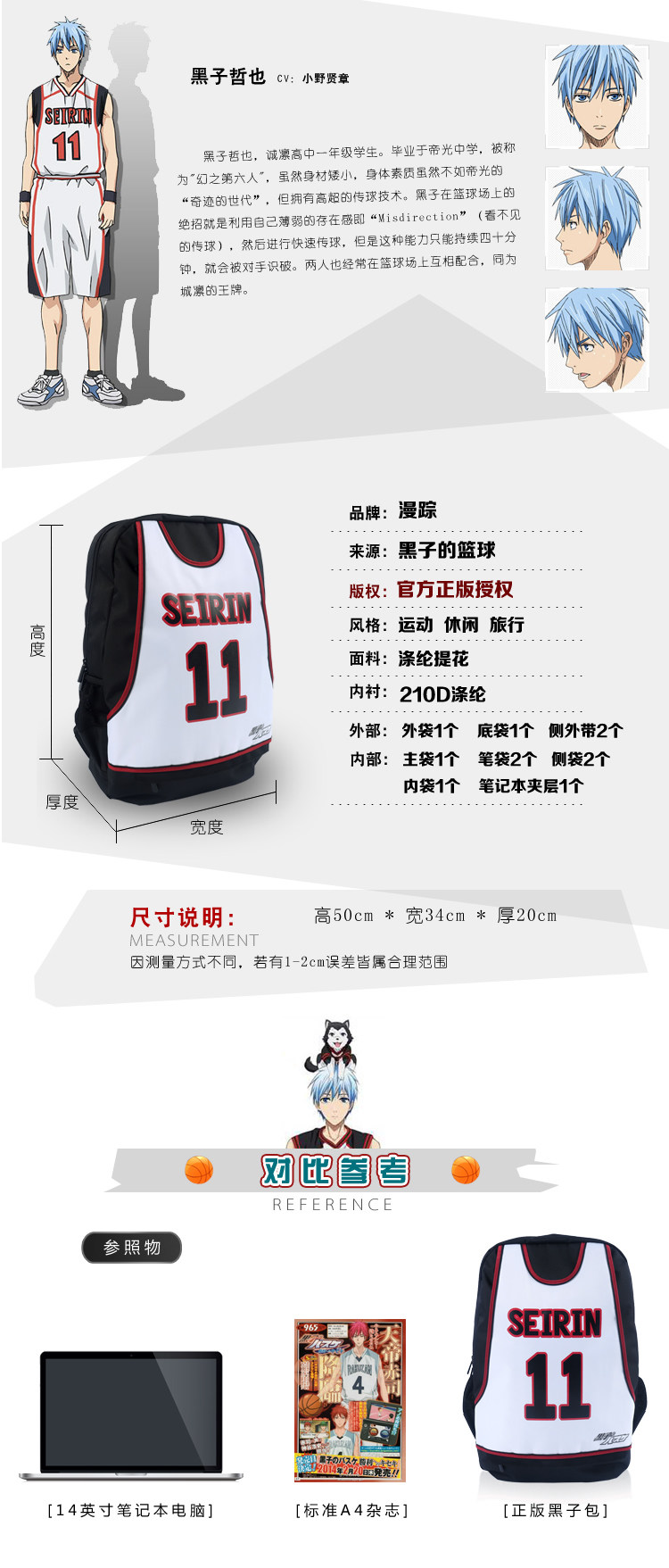 原创 黑子的篮球黑子哲也动漫运动休闲双肩包