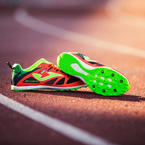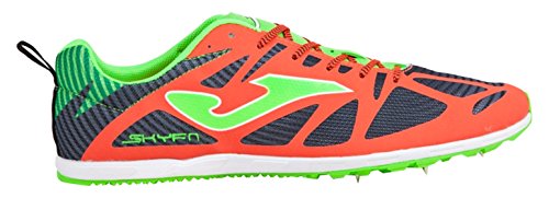 Studio : Joma Publisher : Joma Binding : Misc. Product Description La nostra scarpa ideale per le competizioni. Esso e destinato per la corsa e per le distanze attraversare 1.500, 5.000 e 10.000 metri pista. Caratterizza la sua grande vestibilita e leggerezza. Il taglio di questa scarpa e fatta di TPU saldata senza saldatura per evitare attriti e quindi promuovere la sua leggerezza. Sistema VTS incorpora la traspirazione e mantenere il piede costante la temperatura. Il collo e molto sottile e linguetta regolabile e progettato microfibra di fori per aumentare la traspirazione. Il tallone e rinforzato con il sistema COUNTER FIX, costituito da una microfibra parti esterne per resistenza e un rinforzo interno e PVC espanso. Questo sistema fornisce protezione e comfort maggiore grazie alla sua ergonomica dura. template Skyfit e fatto con EVA preformato tecnologia contribuire ad una migliore e smorzamento assorbire l'impatto del battistrada, recuperando forma piu facilmente transizione passaggi. intersuola in Phylon per tutta la base della suola per fornire ammortizzazione e stabilita. Il montato tra il sottopiede ed il taglio viene eseguito dal sistema GUANTO, per cui entrambe le parti sono cucite piatta, senza sporgere cuciture, mantenendo cosi le linee arrotondate del piede e fornendo un miglior comfort e favorendo la sua leggerezza. La suola e in gomma leggera con inserimento di frontale per regolare TPU perni metallici 6 che forniscono aderenza 0