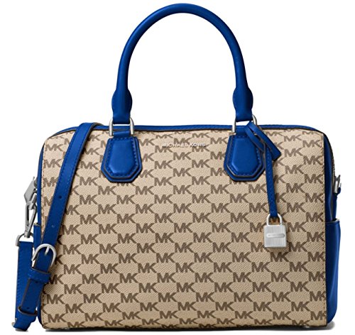 -. Title : Michael Kors Mercer Medium Heritage Logo Duffel Satchel Crossbody Bag Natural Blue