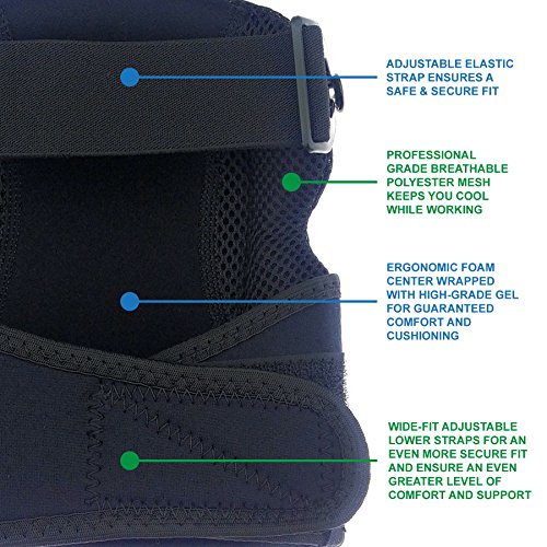- ADJUSTABLE – Easily adjustable elastic and neoprene straps ensure that your knee pads stay secure on your knees at all times and won’t fall down or twist while in use.