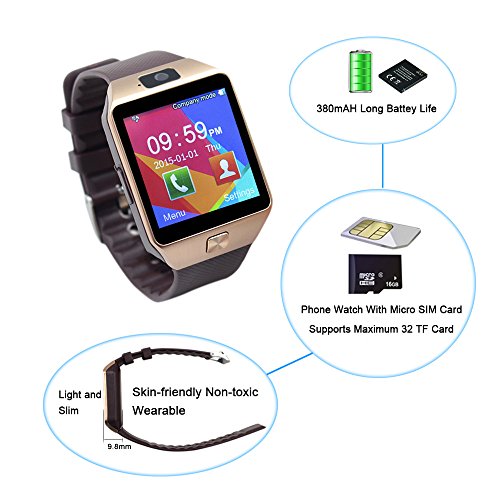 -. Title : SMARTER DZ09 Gear S Bluetooth Smartwatch Smart Watch Wristwatch HD Display SIM Insert Long Battery Life Anti-lost Call Reminder Phone Mate for Samsung Huawei Android Phones - Bronze
