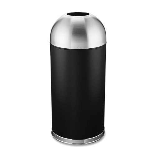 Genuine Joe GJO58896 Stainless Steel Domed Top Trash Receptacle, 15 gallon Capacity, Black/Silver
