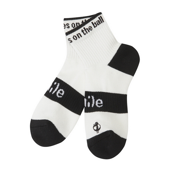 - 위트있는 골프 모티브 슬로건을 적용한 여성 중목 양말.
