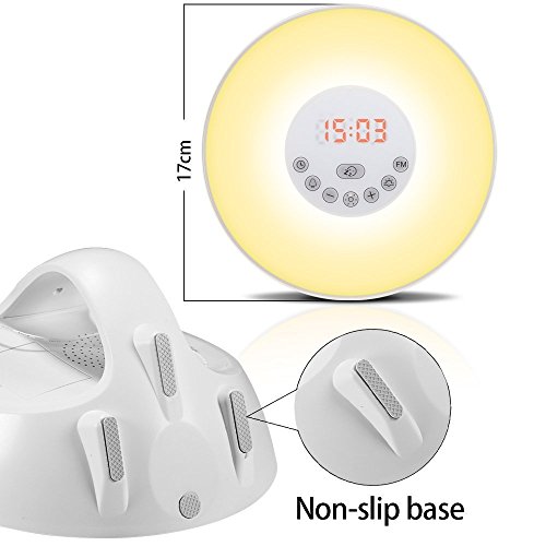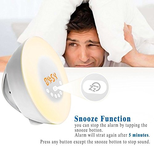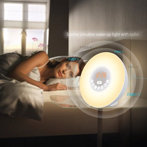 2017 UPGRADE VERSION SUNRISE SIMULATOR AND SUNSET SIMULATION:The wake up light gradually brightens from 10% to 100% 30 minutes prior to the alarm time, to simulate the sunrise effect perfectly. And gradually dim and shuts of finally when you set the sunset mode.