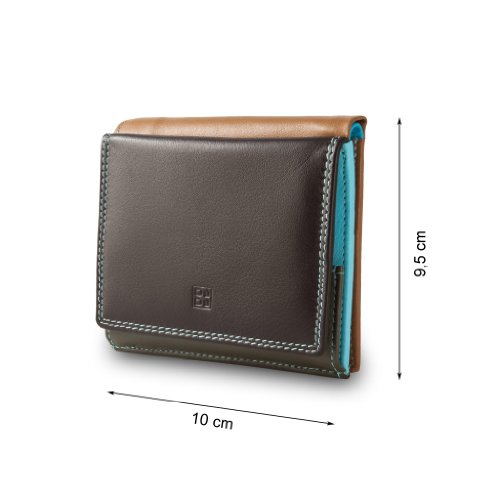 Brand:?DuDu® Material:?soft genuine calfskin leather Dimension (refer when wallet is closed):?9,5 x 10 x 2,3 cm Weight:?80 g Box:?Included Type:?Man Composition: 1 external well model coin purse,?8 credit cards pockets, 2 bill pockets and 2 extra pockets Available colours: Black, Safari, Dark brown, Red, Fuchsia, Blue, Mauve, Woods. All multicolour