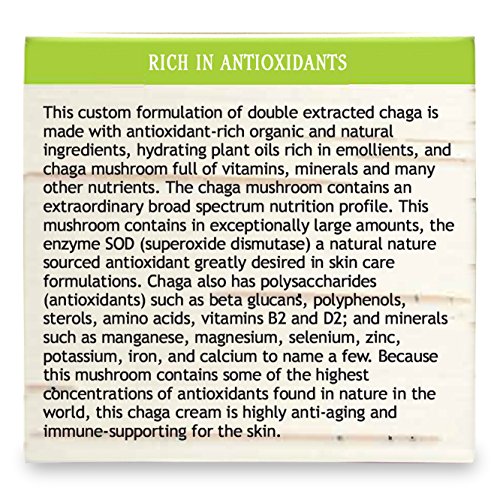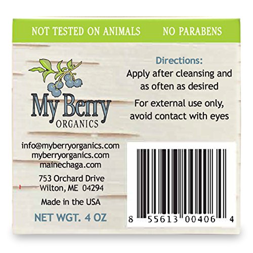 This custom formulation of double extracted (hot water & alcohol extracted) chaga is made with antioxidant-rich organic and natural ingredients, hydrating plant oils rich in emollients, and Maine chaga full of vitamins and minerals. Chaga contains an extraordinary broad spectrum nutrition profile. This mushroom has in exceptionally large amounts, the enzyme SOD (superoxide dismutase), a nature sourced antioxidant greatly desired in skin care formulations. Chaga also has antioxidants such as polysaccharides, beta glucans, polyphenols, sterols, amino acids, vitamins B2, and D2; and minerals such as magnesium, selenium, zinc, potassium, iron, manganese and calcium to name a few. Because this cream contains such high amounts of nature sourced antioxidants, this cream is highly anti-aging and nutritious as it supports the immune system of the skin and helps keep skin looking younger. Read our personal story on the web at My Berry Organics.Feature