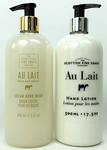 -. Title : Scottish Fine Soaps Au Lait Milk Hand Lotion and Milk and Honey Hand Wash Set, Large 17.5 oz Dispensers