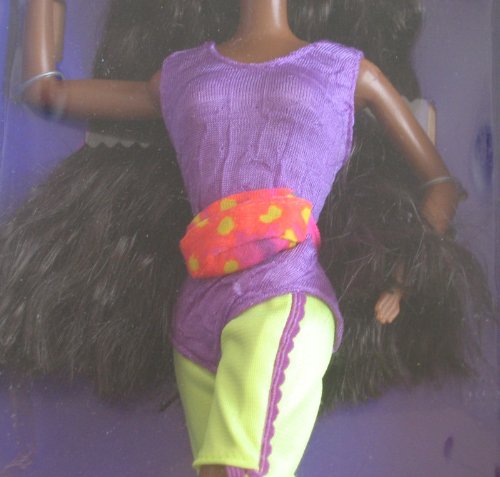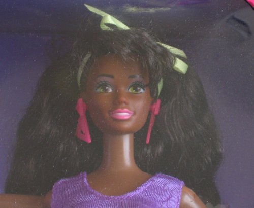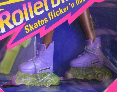 - Includes: 11.5" ethnic AA Afro American Christie Doll w/dark hair & brown eyes. Doll wears pink Earrings, a purple & yellow Skating Outfit (Leotard & Shorts), an orange w/yellow & purple Waist Pack, a pair of purple Roller Skates (Boot Style) w/clear green roller blades. Comes w/ yellow Hair Brush.