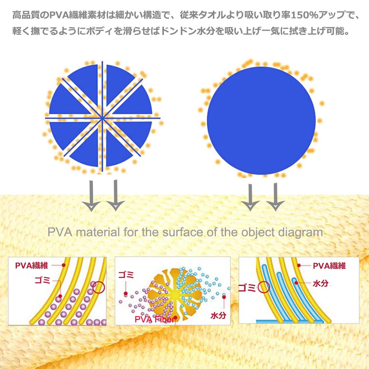 On one side, 3D solid surface is treated by surface roughness processing, friction resistance at wiping is small, super absorbent characteristics are also present, and it makes glass and body friendly.