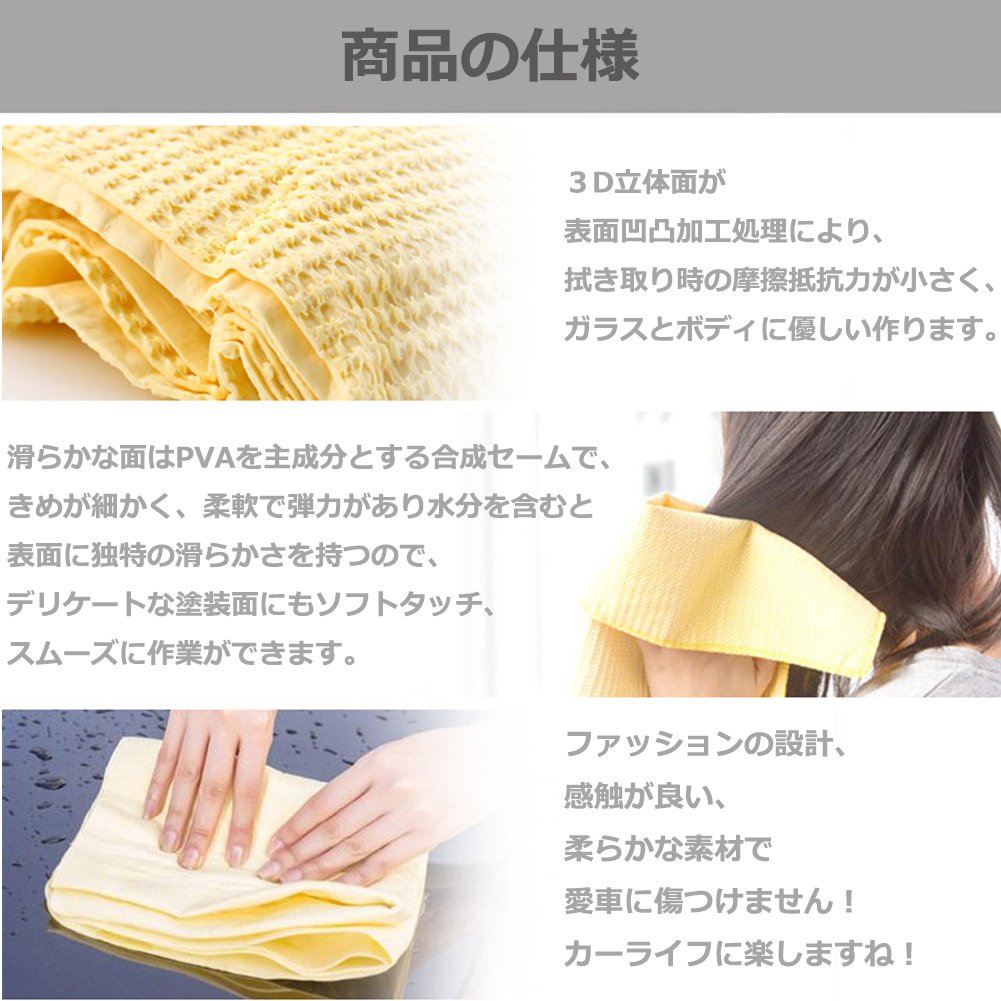The other side is a synthetic seam consisting mainly of PVA, it is soft, elastic and has moisture and it has a unique smoothness on the surface, so it can work smoothly on delicate painted surfaces as well