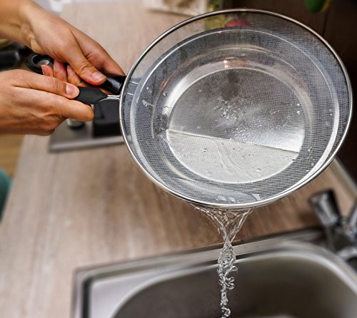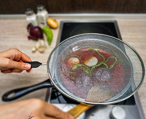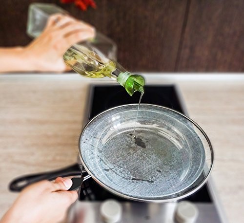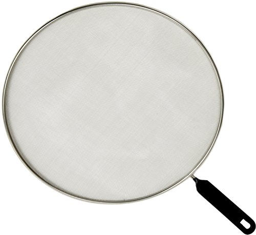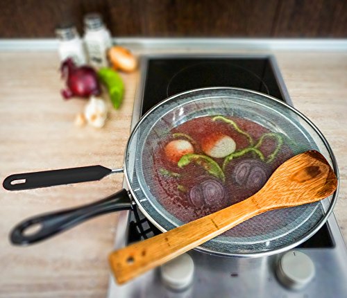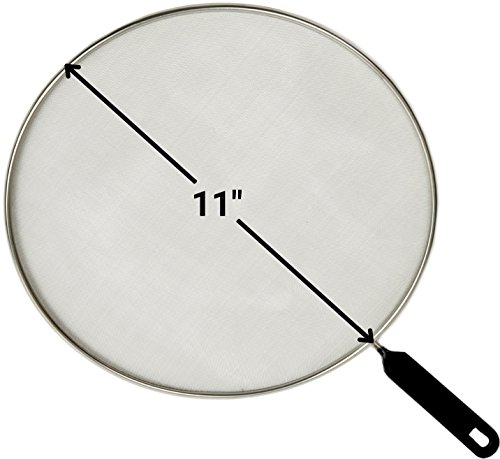 Splatter Screen - Frying Pan Splash Guard - Strainer - Protection for Your Kitchen Stove from Grease Mess - Made of Durable Stainless Steel Mesh - Plastic Handle - 11 Inches Wide Pans Cover, Set of 1